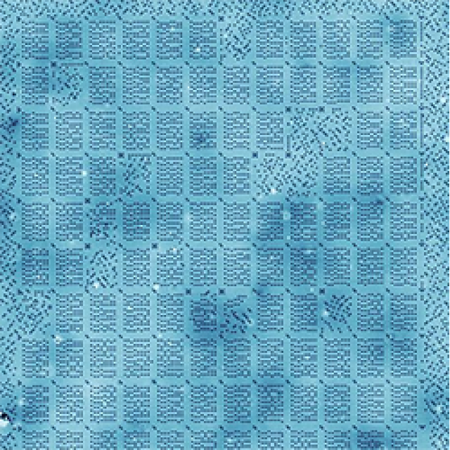 Om die bits op zo'n klein oppervlak op te slaan, legden de onderzoekers chlooratomen op een bedje van koperatomen. Elk chlooratoom kan daarbij op twee posities liggen: ligt het op het onderste koperatoom, dan is het een '0'; ligt het op het bovenste atoom, dan is het een '1'. "Dat is een taal die wij hebben bedacht, het kan ook andersom", zegt onderzoeker Sander Otte van de TU Delft.