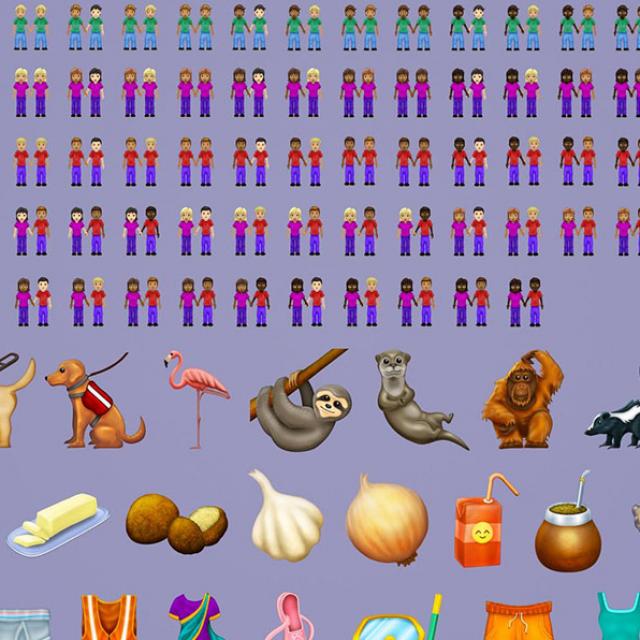 Het gaat om 59 figuurtjes en verschillende varianten voor geslacht, ras en huidskleur. Het totaal aantal nieuwe emoji komt daarmee op 230. Zo zijn er bijvoorbeeld voor de emoji van een stel dat hand in hand gaat, nu verschillende varianten voor de verschillende sekse-combinaties en die zijn er elk dan weer in alle mogelijke kleur- en rascombinaties.
