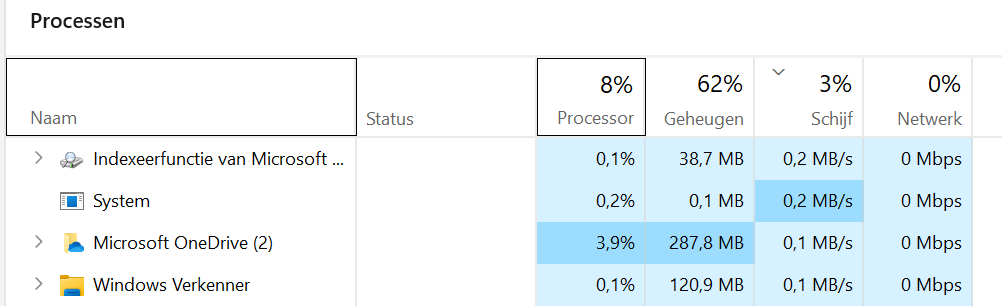 We hebben het Windows Taakbeheer gesorteerd op het gebruik van de Schijf. Niets aan de hand dus!